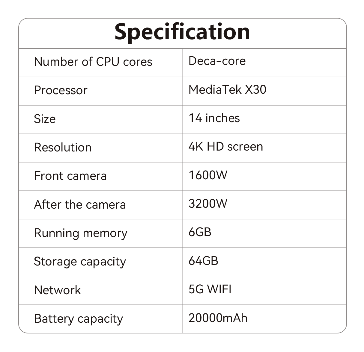 - MTK X30 Processor - Delivers smooth performance for daily tasks and multitasking.