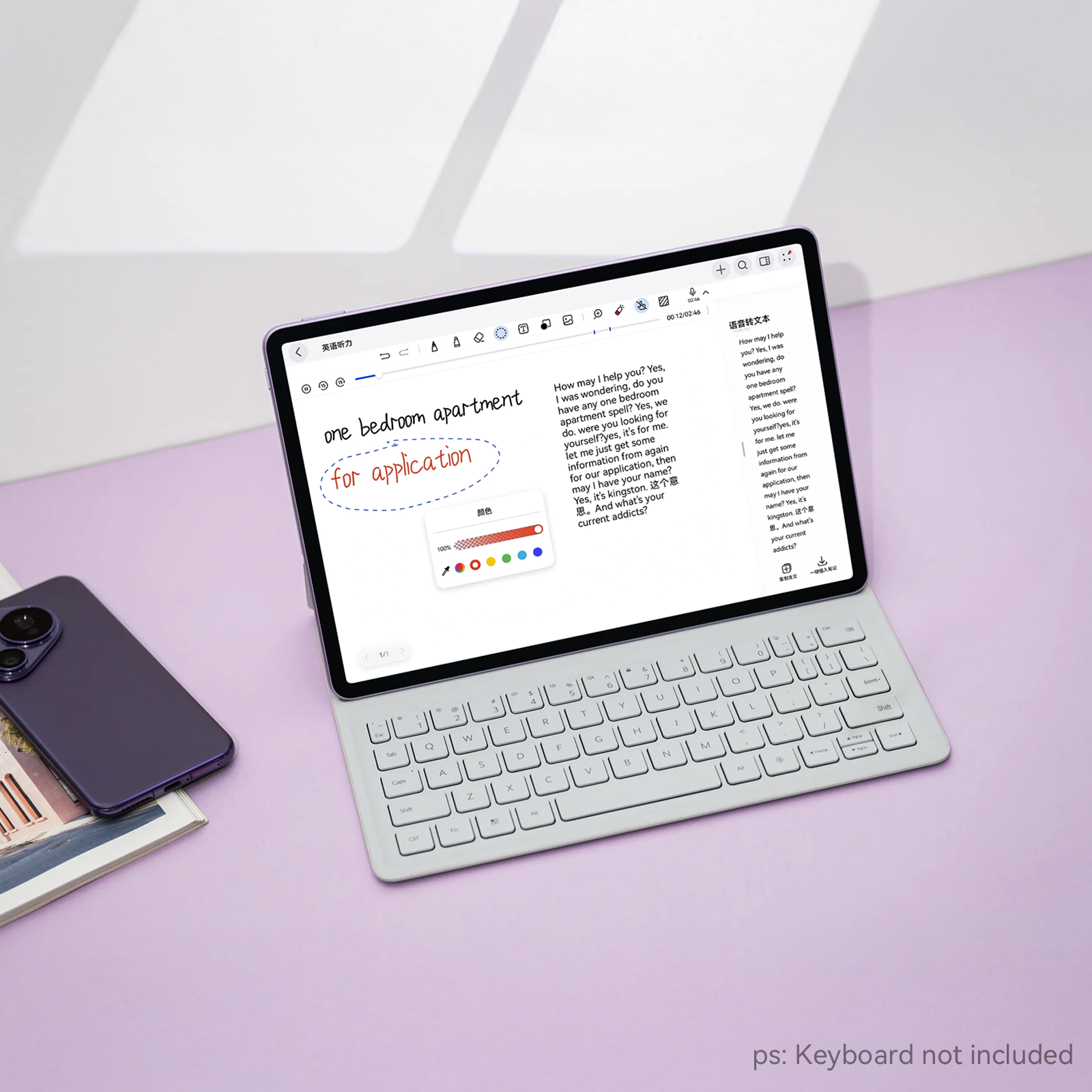 The keyboard offers plug-and-play simplicity, instantly transforming the tablet into a thin and light laptop. Users can leverage this combination for efficient document editing, email handling, and complex spreadsheet operations.